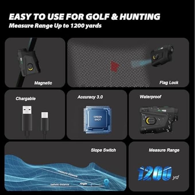 • Environmental & User Friendly: This rechargeable rangefinder with magnet and soft rubber handle to elevate your golfing experience. The rubber handle offers optimal comfort and ease of use, fitting well with the natural contours and the anti-slip design provides a secure grip. With its rechargeable battery and magnetic (also coming with a iron belt to use together) capabilities, this rangefinder offers unparalleled convenience on the course