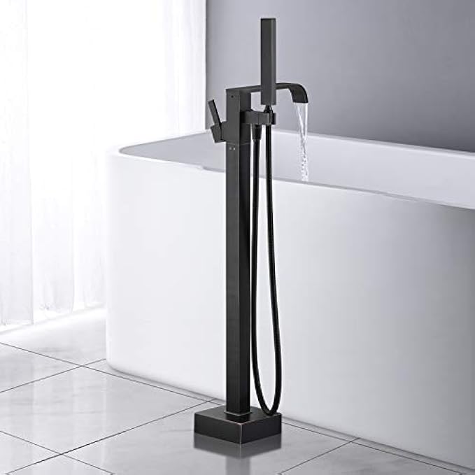 Freestanding Bathtub Faucet Tub Filler Oil Rubbed Bronze Floor Mount Brass Bathroom Faucets Single Handle with Hand Shower