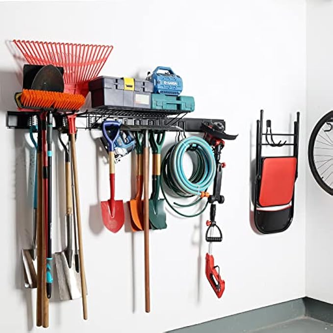 • HEAVY DUTY STEEL - Our wall storage tools are well made, you can tell from the quality of the steel and the fine work while processing it. And this garage storage Rubber-coated sleeves prevent the tools from being scratched or from slipping.