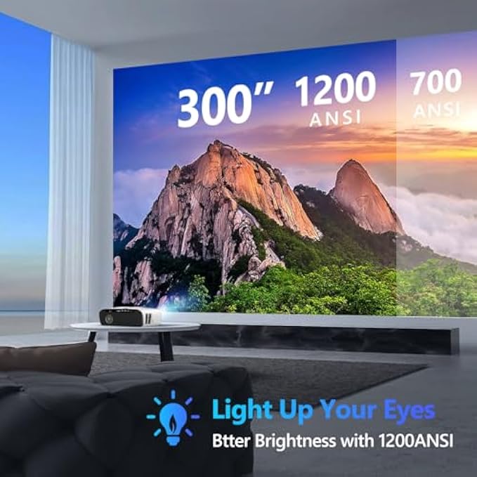 • 【1200 ANSI & 4K Decoding, High Brightness & Clarity】The smart projector leads the way in visual experience, boasting a 1200 ANSI lumens and 4K decoding, giving you a bright & vibrant image with impeccable detail even during the day. Combined with the latest HDR10+ and MEMC tech, it delivers astonishing clarity, contrast, and color accuracy. Our 4k projector is the ultimate cost-effective choice for home and outdoor projection, bring you a true visual feast.