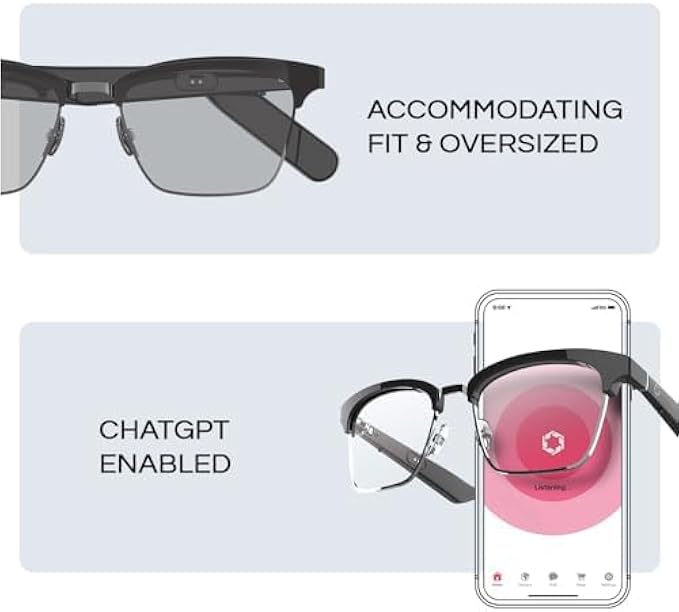 • 🔊 IMMERSIVE AUDIO: Sharp open-ear playback with flush speakers in each temple, these bluetooth sunglasses for men and women providing a safer, enhanced awareness listening experience compared to traditional headphones. Noise-cancelling mic for call and voice assistant makes it ideal for attending meetings anywhere.