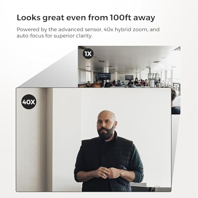 • 【Crystal-Clear Imaging & 40X Hybrid Zoom】: The wireless live streaming camera features 40X Hybrid Zoom (10x optical zoom, 4x digital zoom), delivering exceptionally clear images even from 100ft away. Equipped with 1/2.8" CMOS Sensor, it ensures clarity and detail in low-light conditions. The stream camera streams in Full-HD 1080P and records in QHD 1440P, ideal for vloggers, streamers, and content creators seeking high-quality image.