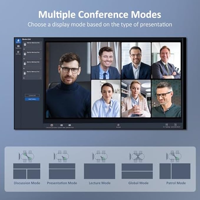 【 Solution of Multi-Camera】 Can integrate up to four video conferencing cameras at once, enabling image and audio capture throughout a wider area. Additionally, provide NexiGo Meeting Studio app instantly grasps the status of all participants in the meeting room. Multiple conference modes can be switched freely to get the best view of the conference. Perfect for long-table meeting rooms, U-shaped meeting rooms, and lecture halls. 【 Built-in Operation System】With its built-in system, you won't need an external computer. Simply connect the camera to a TV or display screen and initiate video conferencing directly through the camera. The camera also features an App Store, allowing you to easily install the major video conferencing apps, such as Zoom, Google Meet, Skype, and Microsoft Teams. 【Enhanced Eight Mics & Hi-Fi Speakers】Eight omnidirectional microphones pick up audio up to 18ft away, and filter out background noise and echo, to deliver crystal-clear audio. The integrated Hi-Fi speakers remove interference noise and echo to transmit crisp bi-directional sound. Provide a more engaging communication experience, enabling effective collaboration and clearer understanding among participants. 【Powerful 8K Conference Camera】The Camera captures a 360-degree panoramic view at 8K resolution and outputs crisp images at 1080P with its dual 195-degree lenses. The camera AI automatically recognizes active speakers and provides focused shots which ensures each conference member is seen in the meeting. The privacy cover ensures lens protection for privacy and security. 【Easy Setup & Wide Compatibility】Simply connect the camera to power and your laptop or PC and open your video conference application, and it is ready for use. Compatible with Windows 7 or higher, macOS 10.8 or higher, and supports popular platforms like Zoom, Skype, Slack, GoToMeeting, Microsoft Teams, Cisco Webex, BlueJeans, and more.