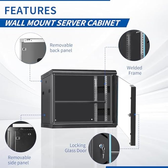 • 【Sturty Construction】- Crafted from high-quality SPCC cold-rolled steel sheet, the 6U performance series wall mount network cabinet boasts a sturdy welded frame and provides sturdy reliable housing for network and server equipment. With 88 lbs wall-mounted load capacity, the server cabinet providing a support for your vital IT equipment.