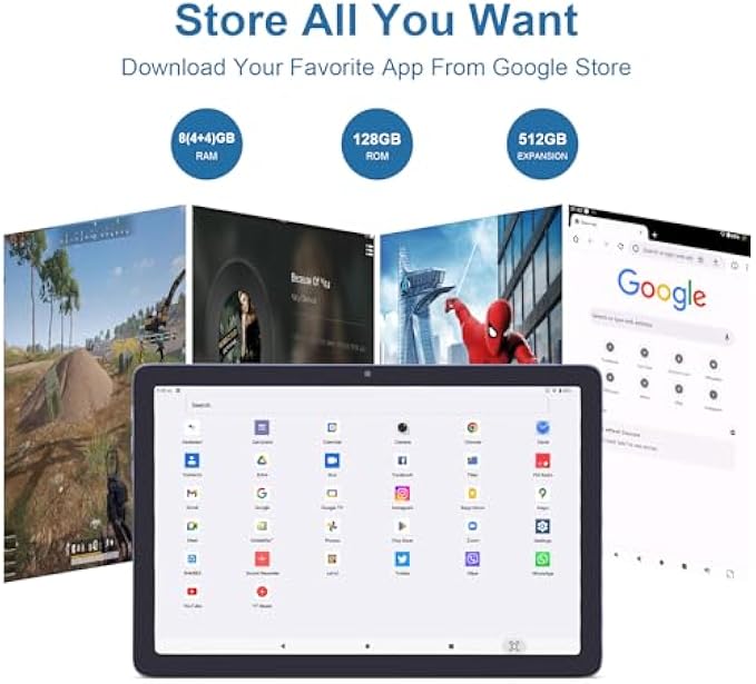 • 【2024 New Powerful Tablet】 This tablet is equipped with the Android 12 soperation system, which provides a more intuitive operating interface, faster system response, and smoother operation, giving you a better experience. Supporting multiple program openings, software programs can quickly and easily switch between gaming, audiovisual, office, and running simultaneously.