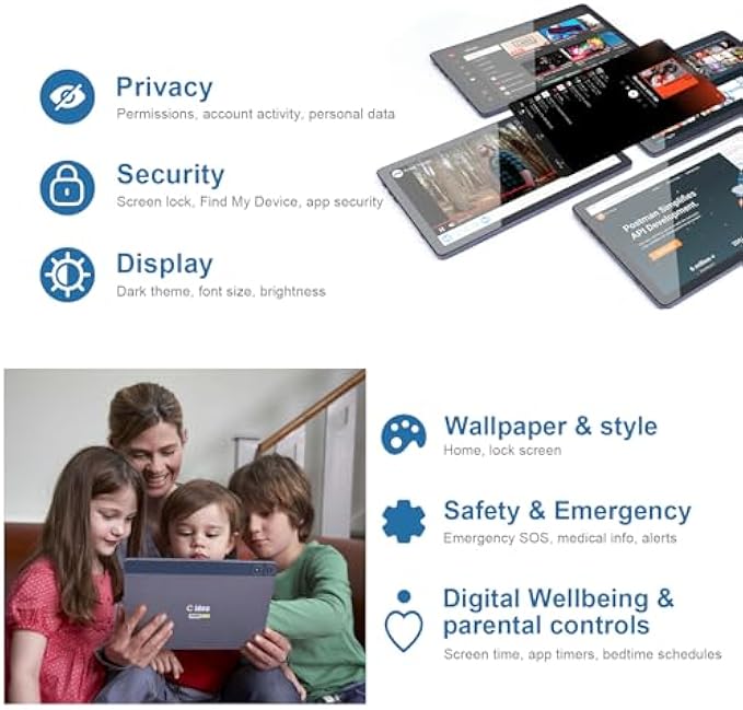 • 【Easy Operation and Setting】 This tablet is easy to set up and operate. We can operate in the "Settings" interface, such as, change the language, wallpaper and parental control and other series of functions. It will pay more attention to personal privacy and tablet security, so that people can use tablets more confidently. It is suitable for most scenarios in daily life.