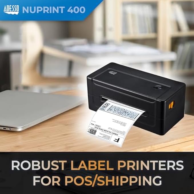 Adesso NuPrint 400 USB Thermal Label Printer – 4" (101mm) Thermal Paper, Label Printing, 1D & 2D Barcode Printing, Easy Paper Loading, Auto Paper Recognition