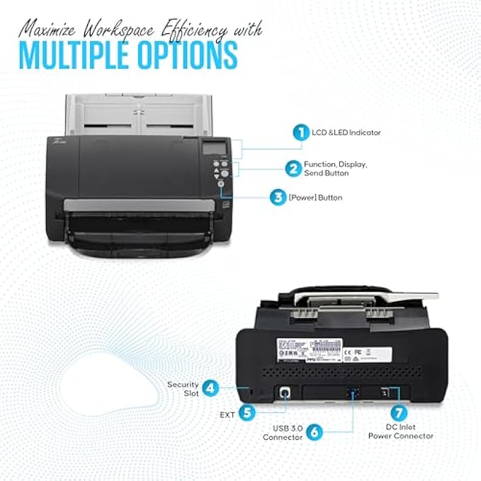FI-7160 FUJITSU Document Scanner - Duplex - 1 Year Warranty- Scanners for Computers with 24V AC Adapter & USB 3.0 Cable, 8.5 X 14 in, 600 DPI, 60 PPM (Mono/Color), ADF, 4000 Scans Per Day (Renewed)