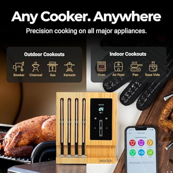 MEATER Block: Wireless Smart Meat Thermometer - 4 Probes, Long Range - for BBQ, Oven, Grill, Kitchen, Smoker, Rotisserie | iOS & Android App | Apple Watch, Alexa Compatible | Dishwasher Safe
