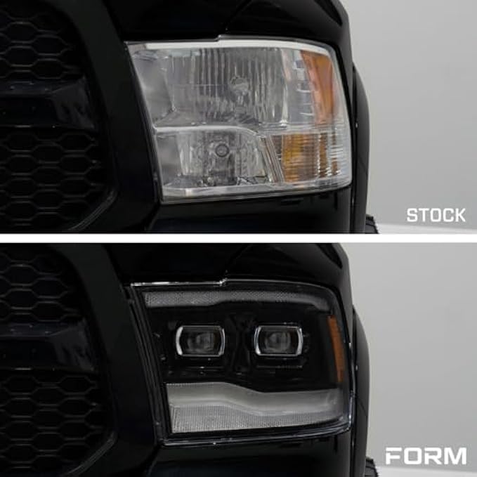 • STAND OUT - Give your truck a more aggressive modern appearance with Form Lighting's Sequential LED Headlights. Elevate your frontend with dual LED projectors, sequential turn signals, startup sequence, and LED running light, all compatible with Ram, 1500 Classic 2019+.