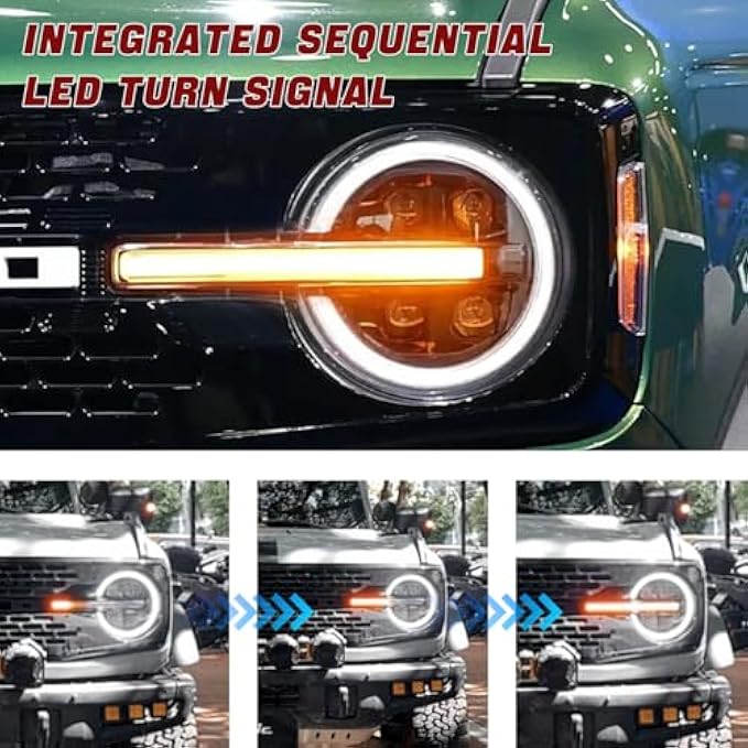 • Fitment:Headlights compatible with Bronco/Bronco Raptor 2021-2024 ,Make sure the model is right for your car before ordering.