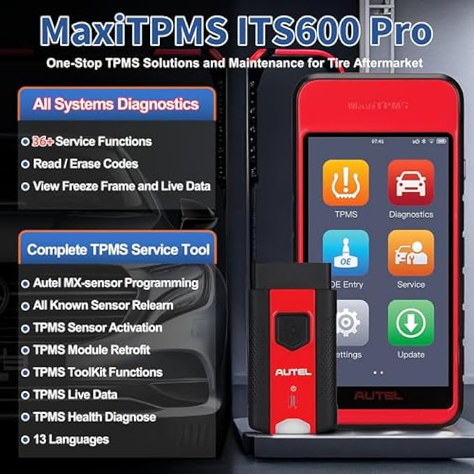 • 【Professional TPMS Programming & Relearn Functions】Autel MaxiTPMS ITS600 Pro has same TPMS functions as Autel Scanner MaxiCOM MK808TS and MaxiCheck MX808TS in TPMS. Autel ITS600 Pro supports 3 ways to relearn all the OEM sensors (Stationary Relearn, Automatic Relearn, OBD Relearn), and 2 methods to program Autel MX-Sensor (Copy by OBD and Auto Create 1-20 Sensors), TPMS Retrofit and TPMS ToolKit functions, it's the best tire service tool with favorable price.