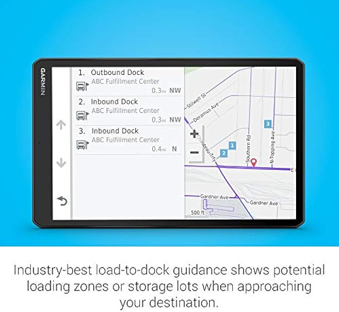 • Industry-best load-to-dock guidance shows potential loading zones or storage lots when approaching your destination