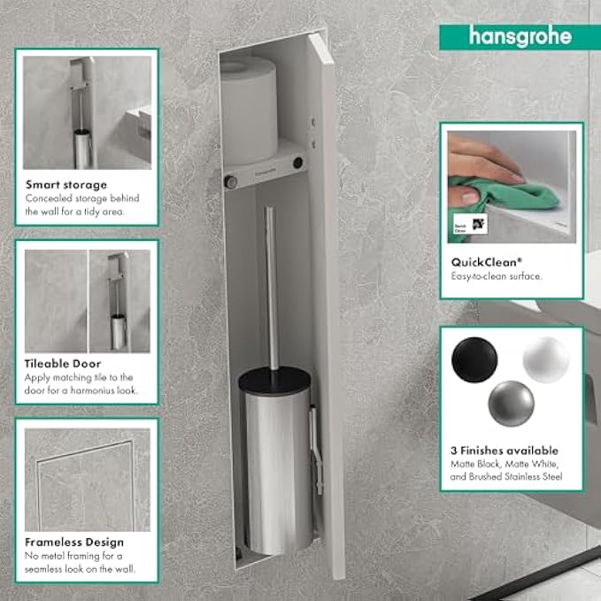 hansgrohe 56060700 XtraStoris Rock Recessed Holder with Shelf & Tileable Door in Matte White Toilet Brush