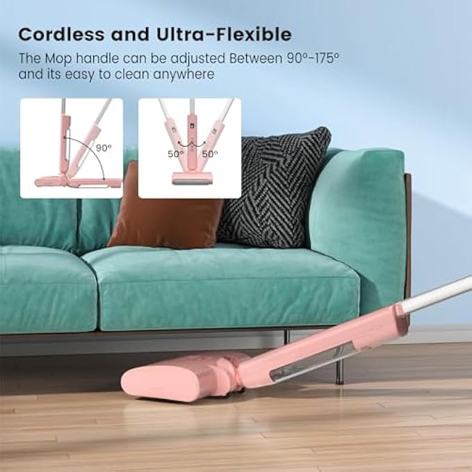• Streak-Free Drying: The Cordless Electric Mop with up to 98% water recovery rate, your floors are completely dry and streak-free in a matter of minutes. The lightweight, self-propelled design means less work for you so you can clean any mess.