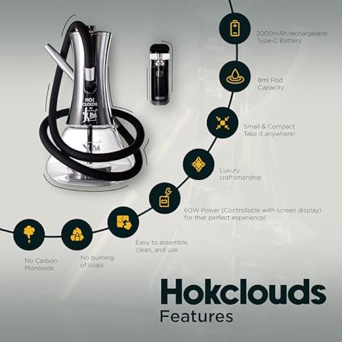 • Satisfy Your Cravings - Our mini hookah works with all freebase e-liquids. You may adjust its wattage to up to 60W, allowing you to create intense clouds or smooth draws tailored to your preferences.