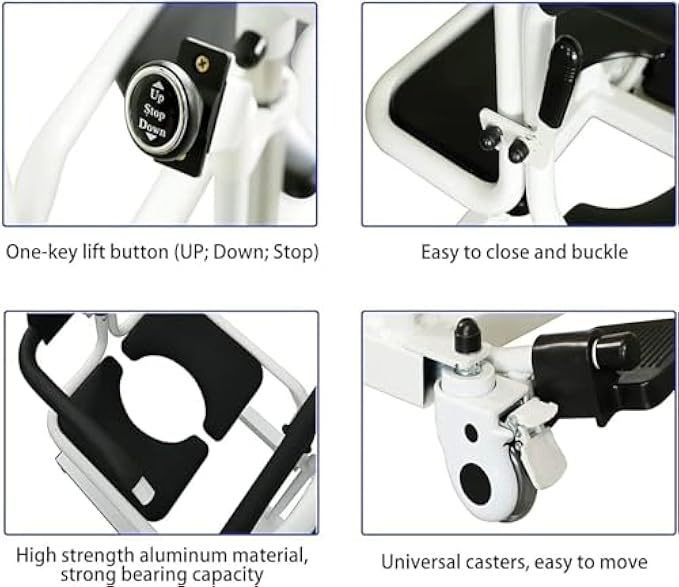 • 【Comfortable and Versatile】The open seat cushion design is convenient for patients to use the toilet. extra, a removable soft cushion that is easy to clean and provides lasting comfort for long periods of sitting. It is an ideal alternative to chairs, sofas, and wheelchairs. It can be used not only as a patient transfer device but also as a wheelchair, bedside toilet, or bathroom chair. Making it perfect for the elderly, disabled individuals, or anyone in need of assistance during bathing.