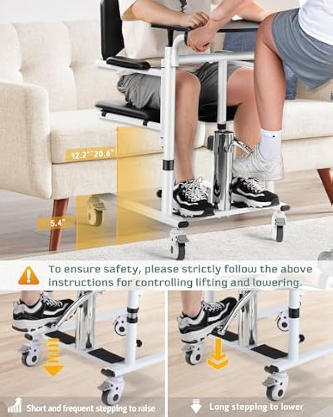 • 【4-in 1 Multi-functional Wheelchair】Our innovative lift wheelchair offers 4 distinct functions in one compact design; it seamlessly transforms into a bedside commode, patient lift wheelchair, shower chair, and raised toilet seat, which enhances mobility independence for the disabled and elderly, while significantly easing the workload for caregivers