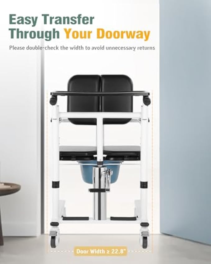 • 【Effortless and Reliable Transfers】Featuring a 180° double-sided opening, this chair ensures seamless and safe patient transfers; engineered to prevent tipping, its reinforced metal structure supports up to 330 lbs, guaranteeing durability and reliability in various caregiving environments; additionally, the lockable wheels provide enhanced stability
