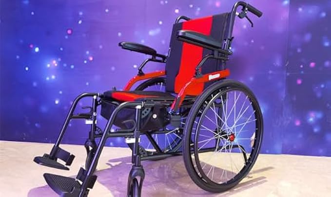 • 【magnesium ultra lightweight wheelchair】The Pnomsp wheelchair is come with cushion and weighs only 14 lbs,The total weight after installing the two rear wheels is 19.5 lbs,Magnesium alloy frame,shigh strength, light weight, the color of the frame is black and red, unique design, very slap-up.