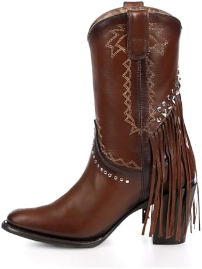 • Stylish Fringe Design: These eye-catching cowboy boots feature a chic fringe detail along the shaft for a trendy, Western-inspired look.