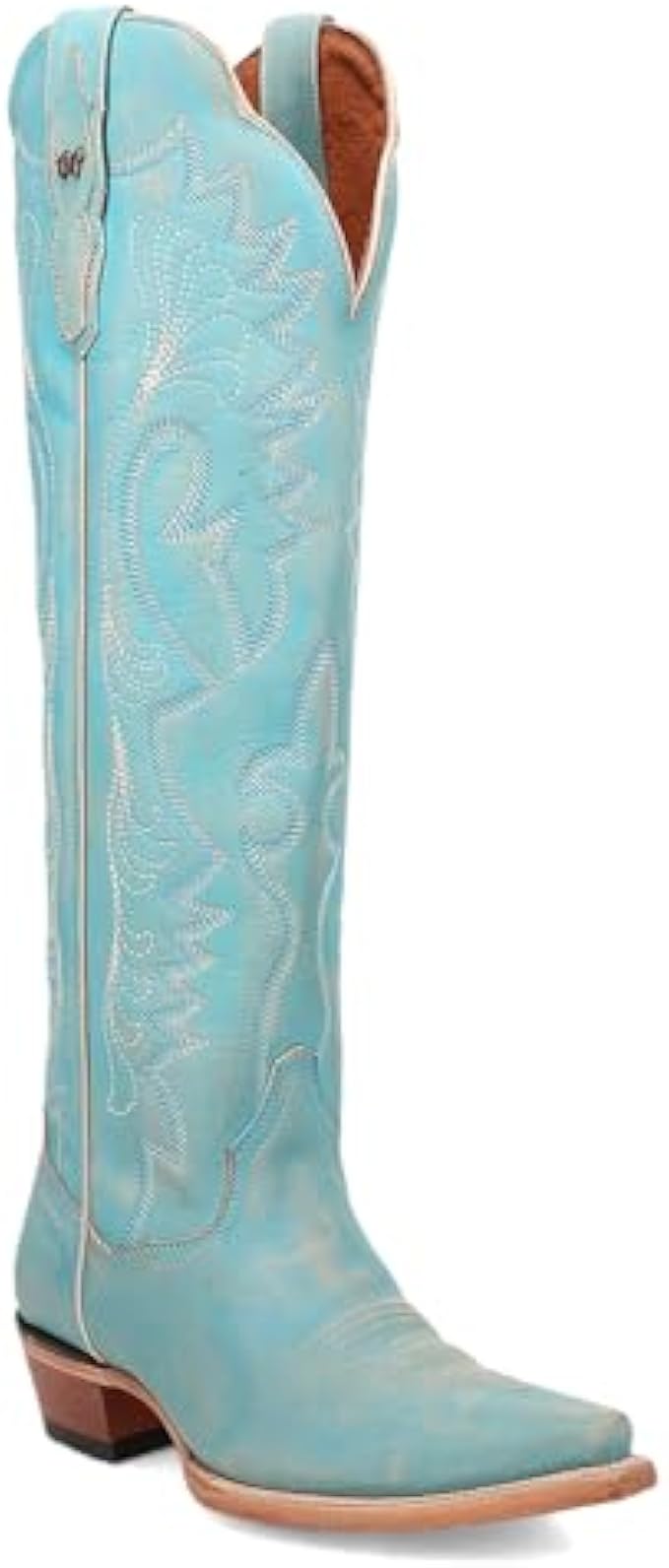 Dan Post Boots Womens Celeste Embroidered Snip Toe Casual Boots Over the Knee Low Heel 1-2" - Blue