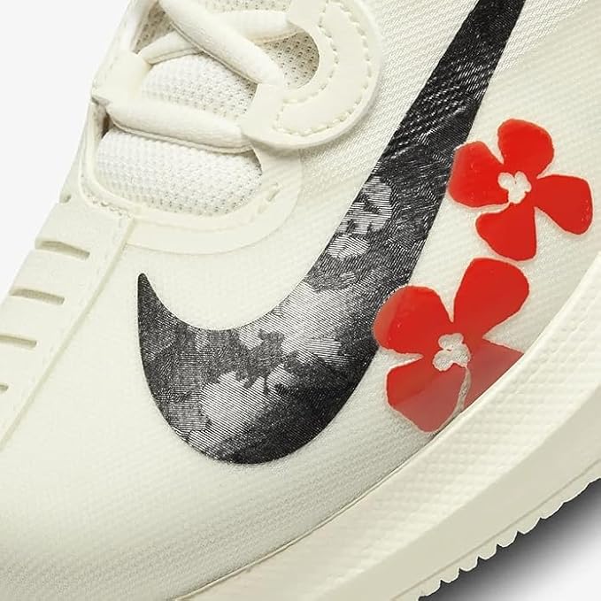 • Durable Traction: The rubber outsole features a durable tread pattern that grips the court surface, providing reliable traction for quick pivots and sprints. Naomi Osaka Design: Reflecting Naomi Osaka's bold style, the shoe features a striking color palette of Coconut Milk, Team Orange, and Black, ensuring you make a statement with every step.