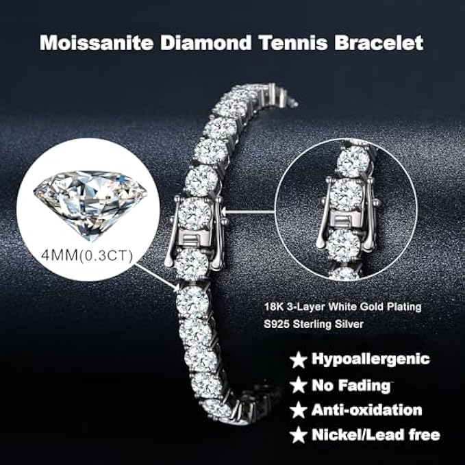 • 【Moissanite With 2.5 Times More Brilliance Than Diamonds】High-quality moissanite sterling silver tennis bracelets are most similar to diamonds, with hardness comparable to diamonds. Fire, refractive index, and dispersion are all better than diamonds. Moissanite is stronger and does not chip as easily, making it a good choice for buyers looking for quality jewelry at a reasonable price.