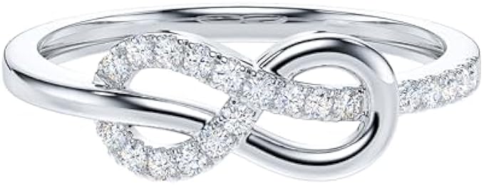 THELANDA Genuine Moissanite Solid 14k White Gold Intertwined Tie The Infinity Love Knot Simulated Diamond Petite Ring Promise Ring