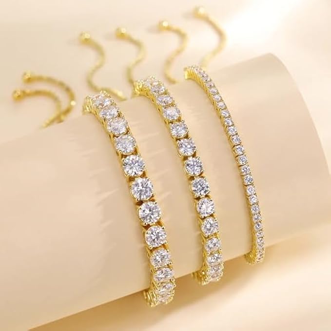 1.2-12 Carats 2/3/4/5mm Moissanite Bolo Tennis Bracelet,Adjustable Bolo Simulated Diamond Bracelets,18K Yellow Gold Plated 925 Sterling Silver,D Color VVS1 Round Brilliant Cut,Gifts for Women Men
