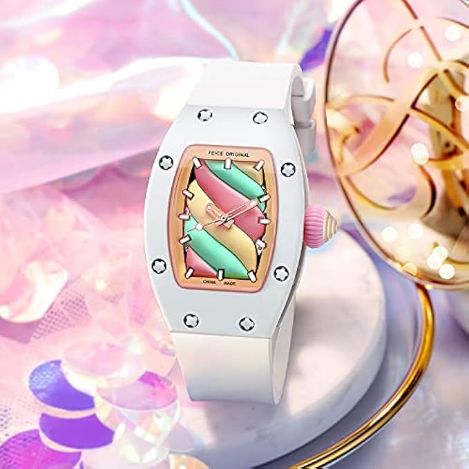 • Elegant Barrel-Shaped Design: This unique women's automatic watch features a barrel-shaped case (46*32mm) that contours perfectly to the wrist, offering both comfort and style. The vibrant colors on the dial add a playful touch, while the luminous hands make it easy to read in the dark after absorbing sufficient light.