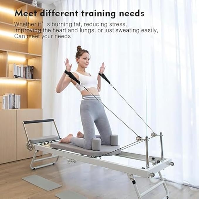• Ideal for strengthening the entire body, burning fat, toning major muscle groups, and achieving the physique you wish.Designed with at-home use in mind. This studio-grade reformer is made with Heavy-duty steel chassis and aluminum.